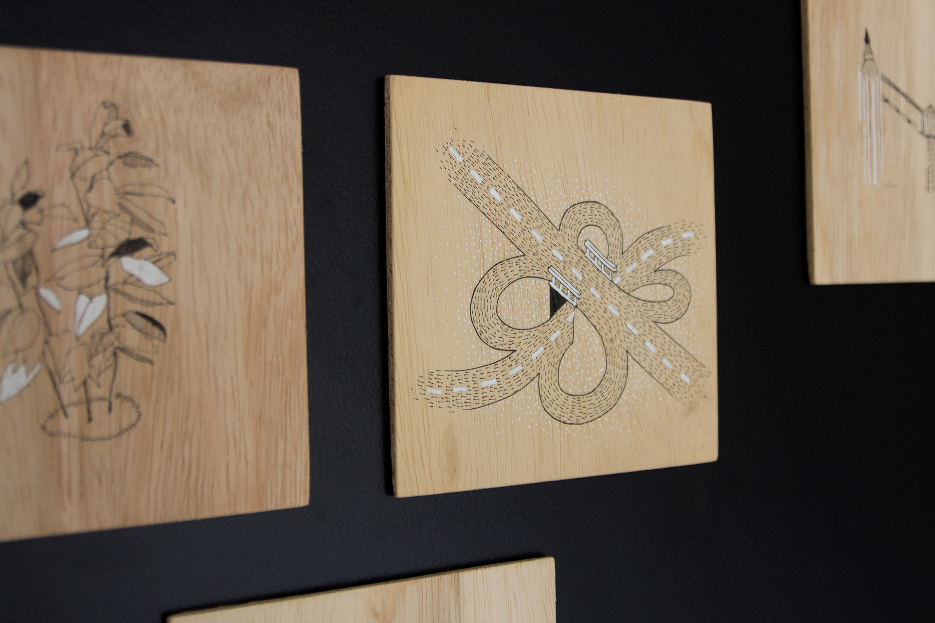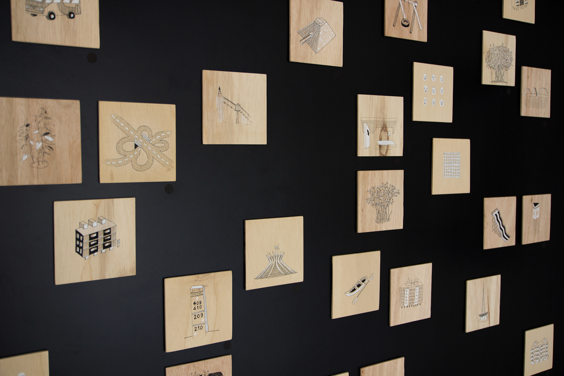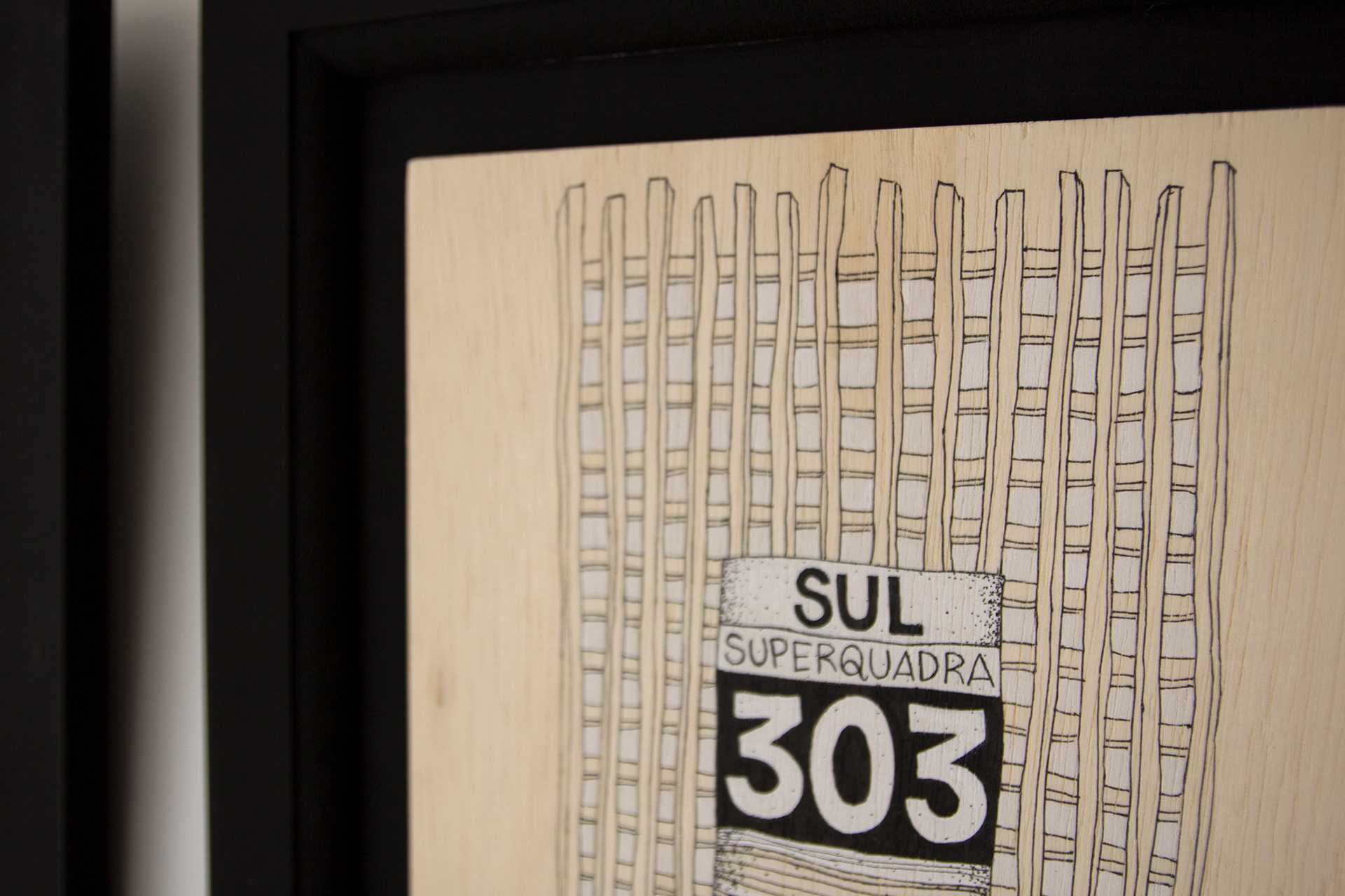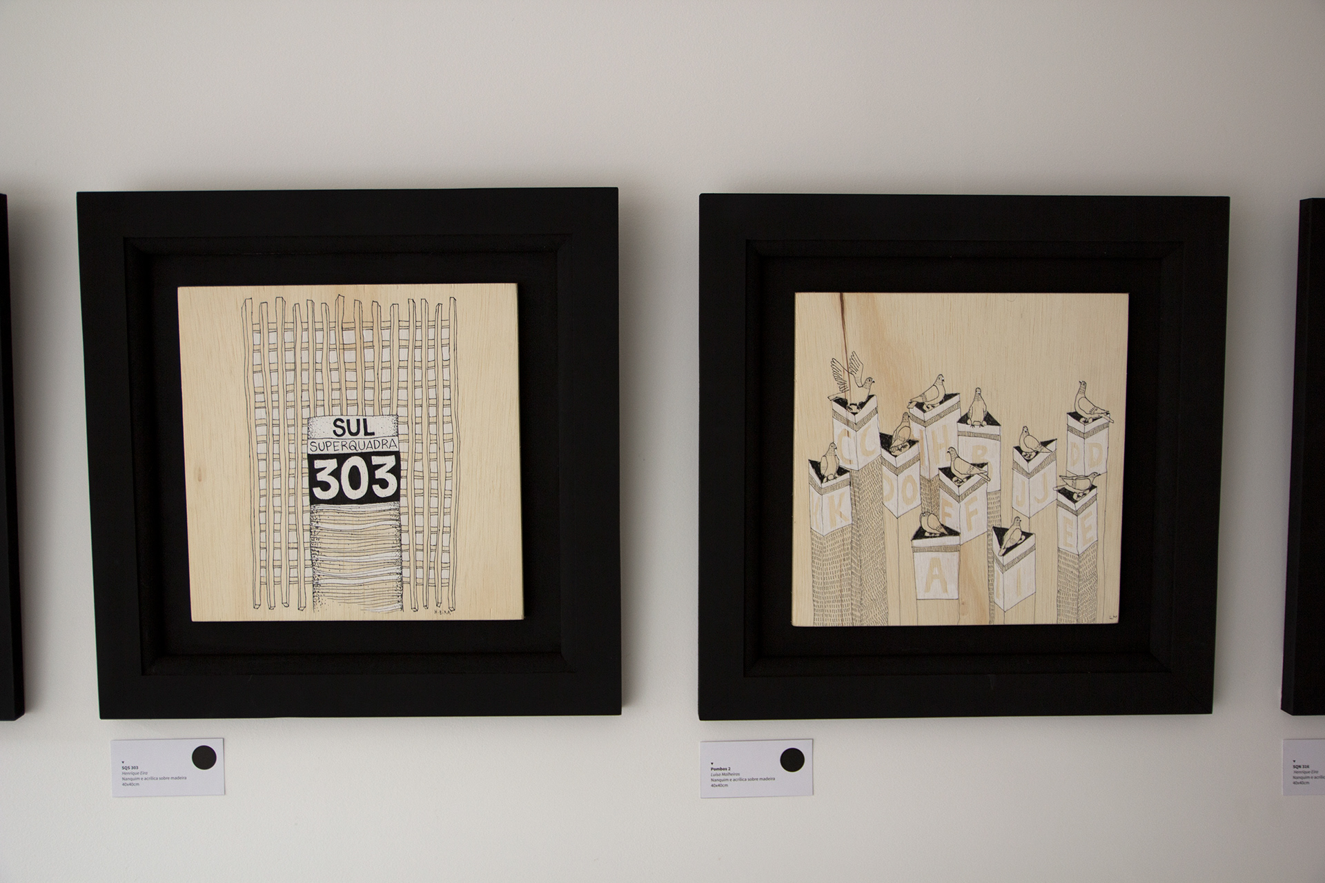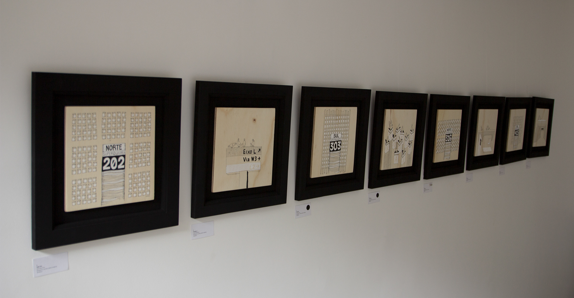 EXHIBITION INTRODUCTION: Two lines gave birth to the city of Brasília. Straight and curved, close and far, big and small. The city-plane, full of geometry and texture, is the inspiration to present a landscape that, being seen so often, might have become invisible. The group Quadradinho invites us to stare at the city again: to notice its letters, its forms, its ways. With the simplicity of the sketch of the Plano Piloto, we see the line present us the everyday city that is mixed within us.