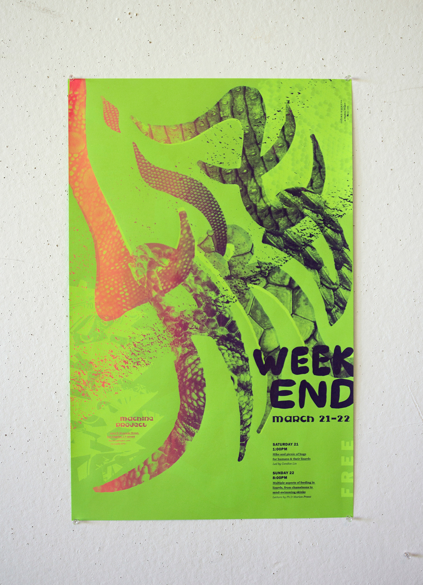 Publicidade para evento de lagartos no Machine Project, em Los Angeles.