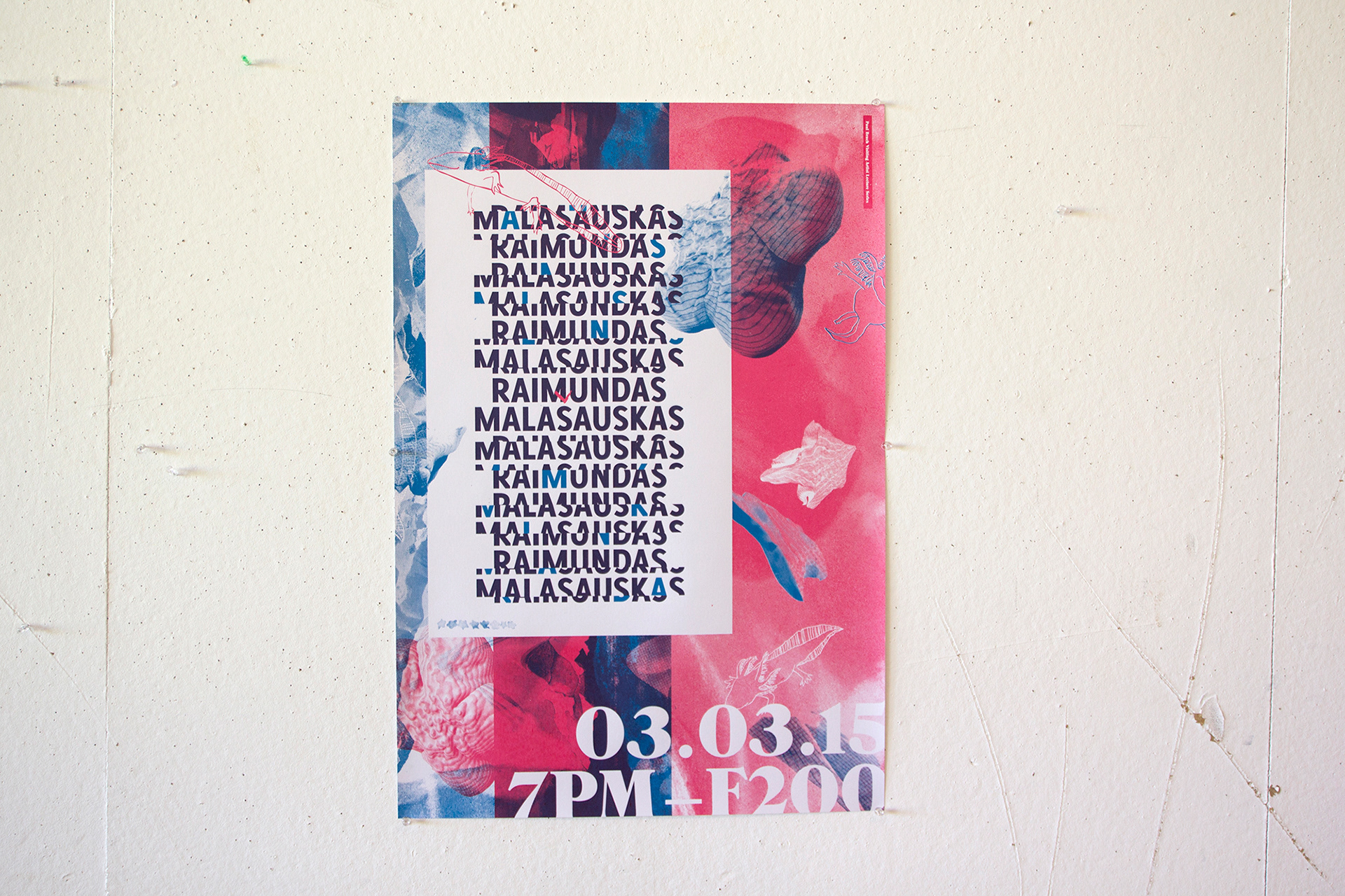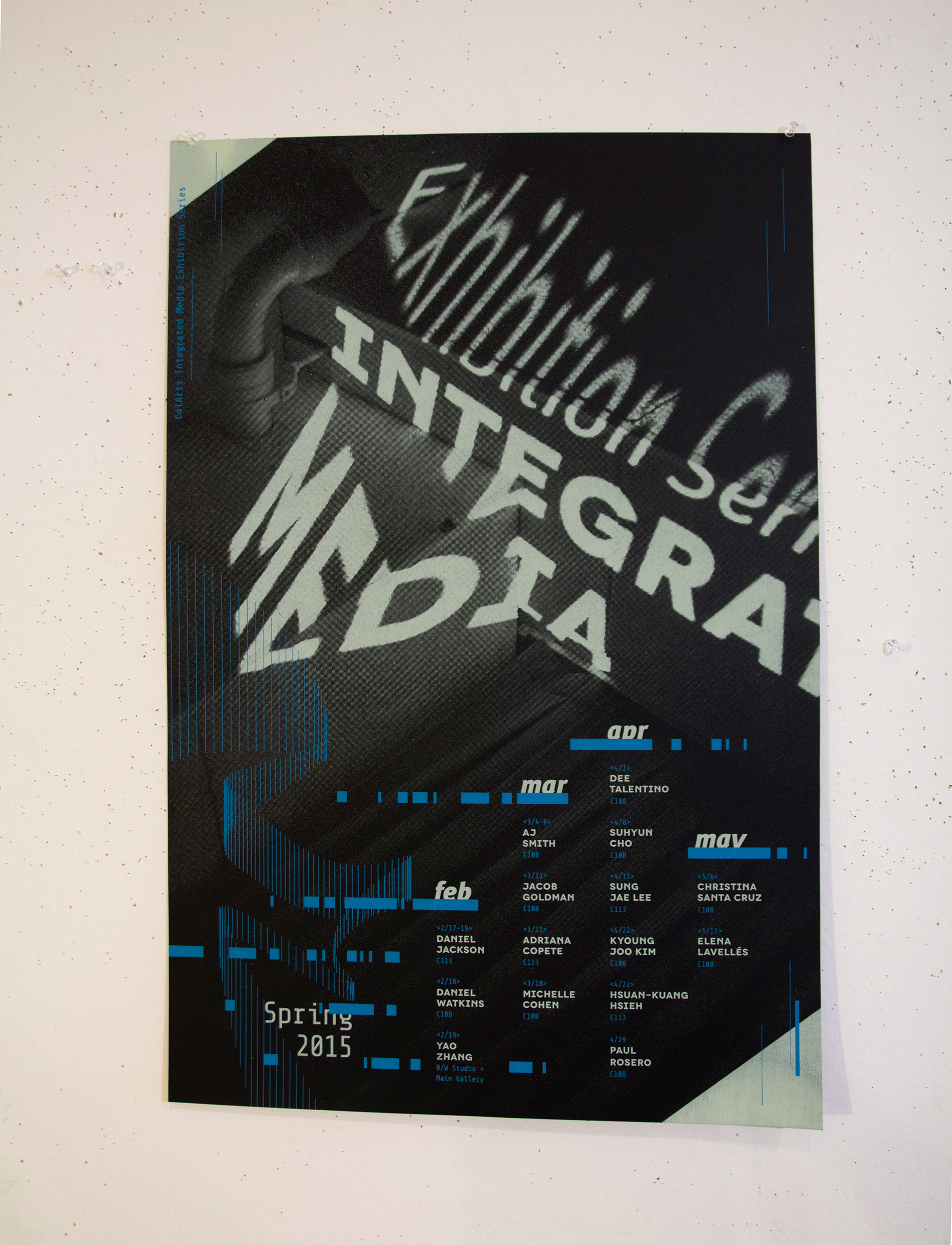 Cartaz para ciclo de exposições dos estudantes do departamento de Integrated Media, na primavera de 2015. Feito em colaboração com Aamina Ganser.